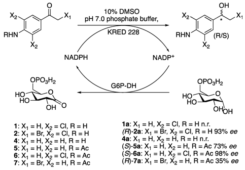 在近日的一篇文章中,挪威科技大学化学系Elisabeth Egholm Jacobsen研究组和EVO真人的竺伟博士合作,通过酮还原酶KRED 和辅因子烟酰胺腺嘌呤二核苷磷酸盐(NADPH)催化合成了(R)-1-(4-氨基-3,5-二氯苯基)-2-溴乙-1-醇,ee> 93%; 并通过相同体系中合成了(S)-N-(2,6-二氯-4-(1-羟乙基)苯基)乙酰胺,ee >98%。 以上两种中间体都是克伦特罗异构体的潜在前体。该研究中使用的酮还原酶ES-KRED-228来自EVO真人(上海)有限公司。该研究成果《Chemoenzymatic Synthesis of Synthons as Precursors for Enantiopure Clenbuterol and Other -2-Agonists》于2018年11月4日发表于《Catalysts》杂志