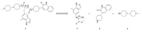 路线一(原研公司专利CN102834388B)[1]:以N‑Boc‑4‑哌啶酮为起始原料,经5步反应(偶联、氢化、缩合、环化、脱保护)得到中间体3(图10)。